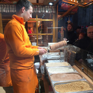 Set next to the Chocolate Museum, Hafenmarkt has a “port” theme, which includes people in costume and a large pirate ship. My jetlag vanished as I walked around in the cold night air. The glühwein warmed my insides. Seeing people, clearly friends or work colleagues enjoying time together standing around tables, the lights and delicious foods brought me more joy than I can describe.
